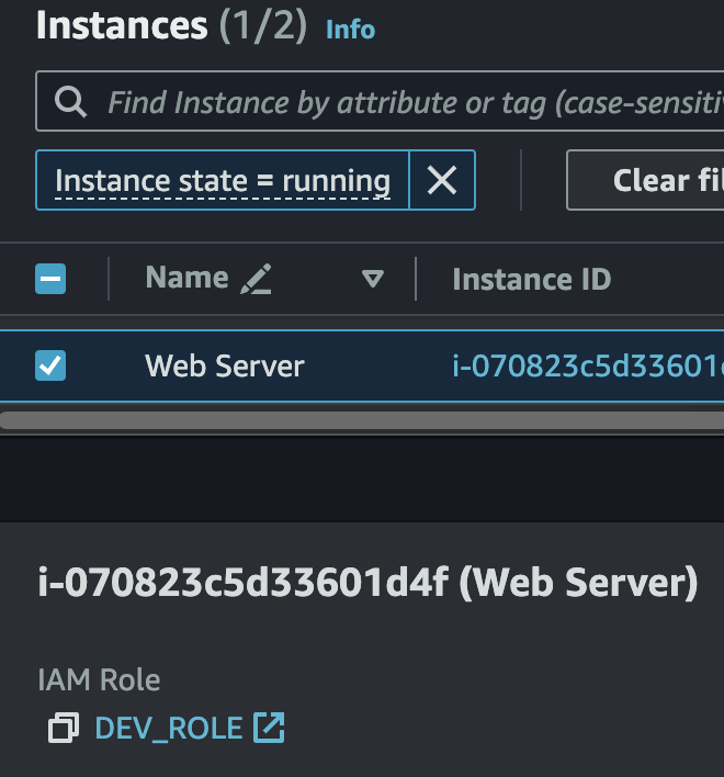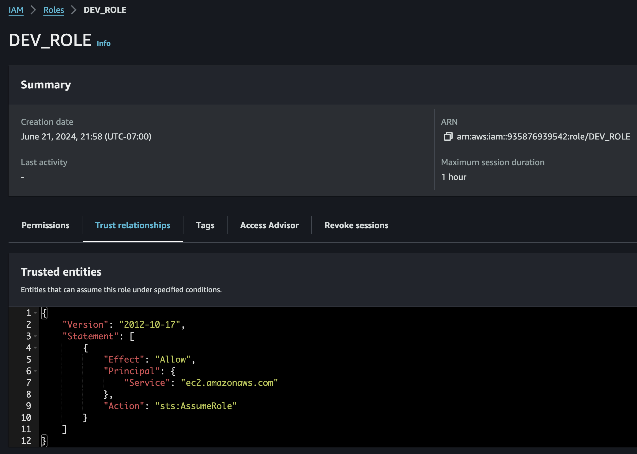 "Arn": "arn:aws:sts::880344156207:assumed-role/DEV_ROLE/i-070823c5d33601d4f"