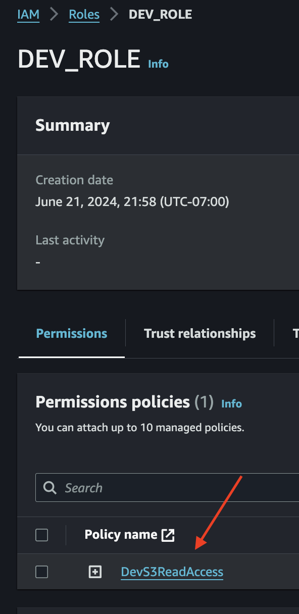 "PolicyArn": "arn:aws:iam::880344156207:policy/DevS3ReadAccess"