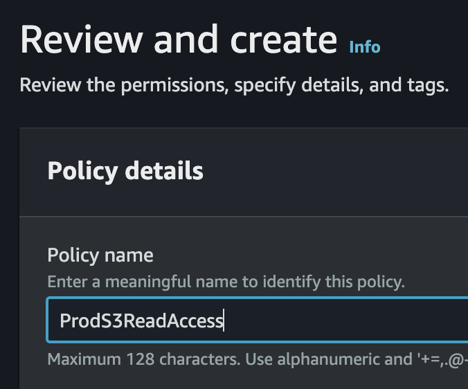 - Create a new IAM Policy which has read access to a specific S3 bucket