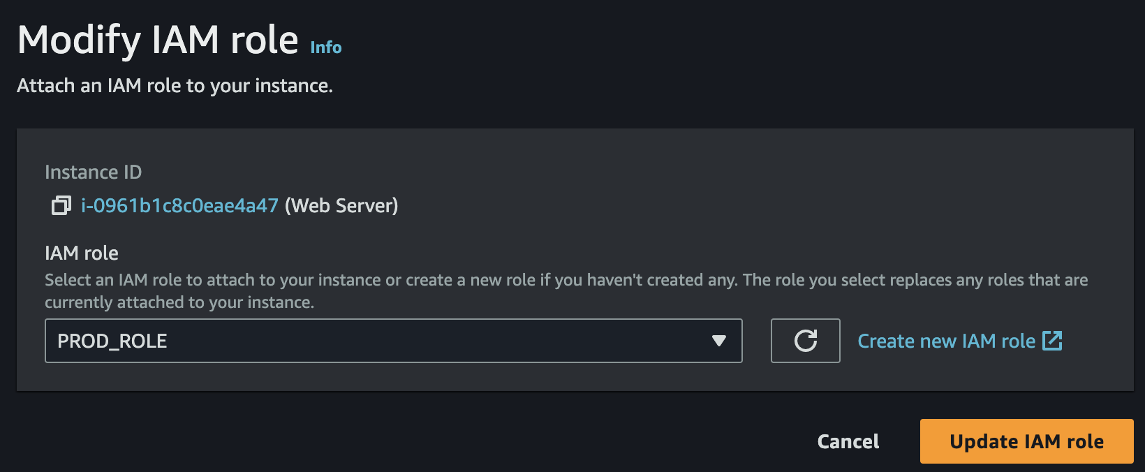 IAM Instance Profile associated to EC2 Instance as seen in the AWS Management Console