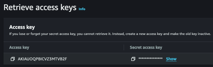 AWS Access Key ID [None]: AKIAUOQPBICVZ3MTVB2F