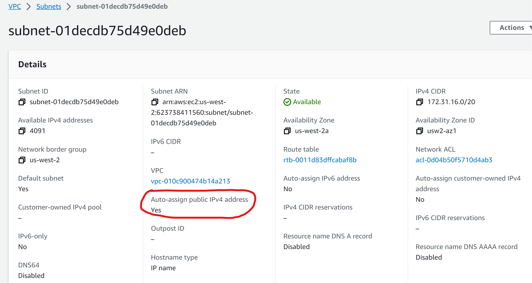 - Subnet attached to a Route Table with 0.0.0.0/0 route pointing to the IGW