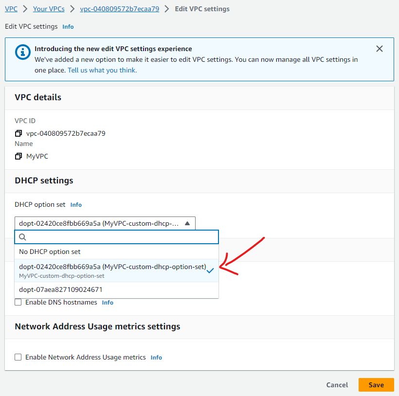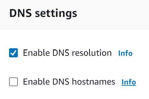 enableDnsSupport: (this is DNS Resolution setting)- Default True